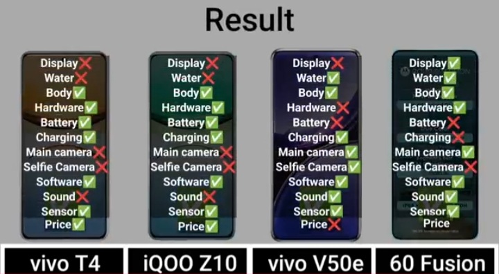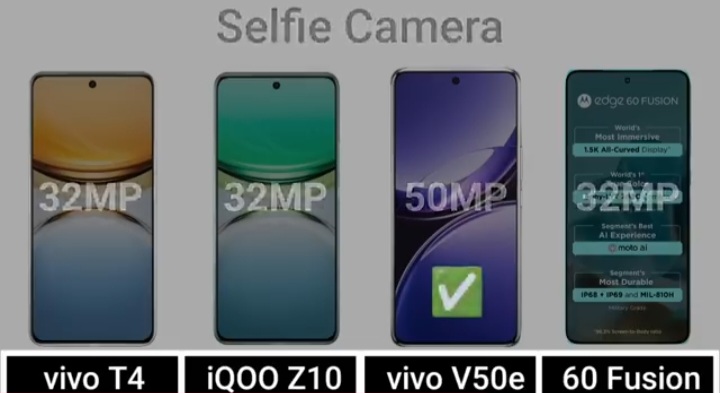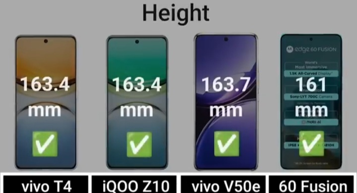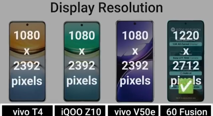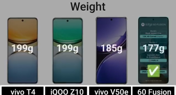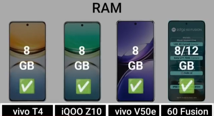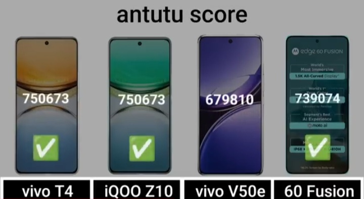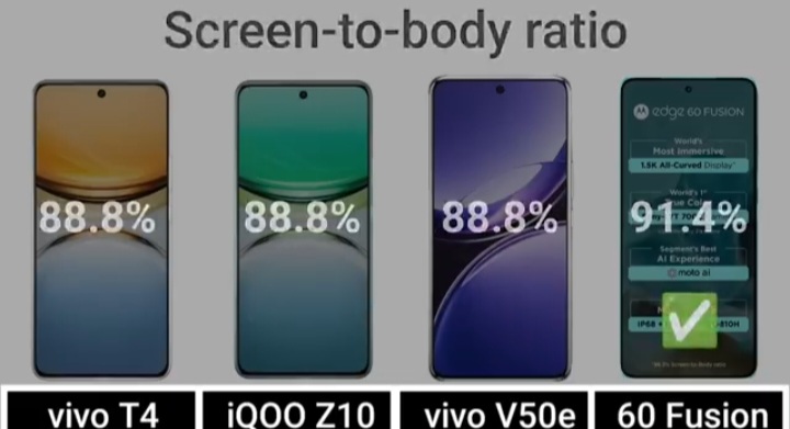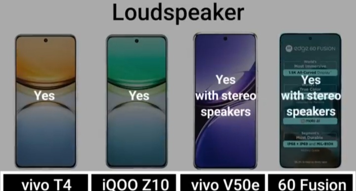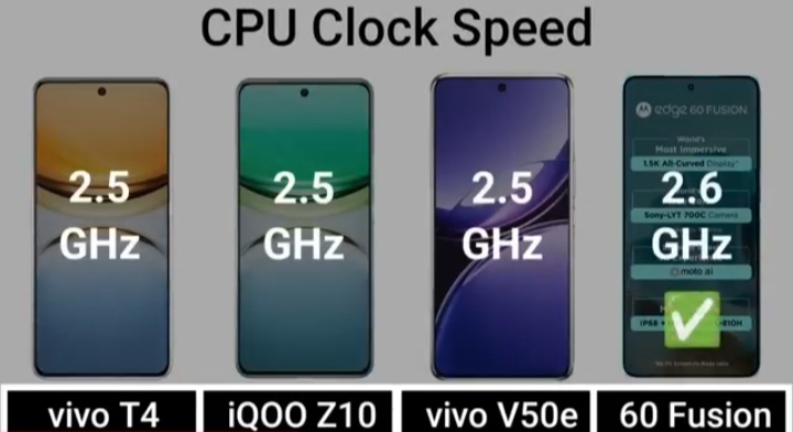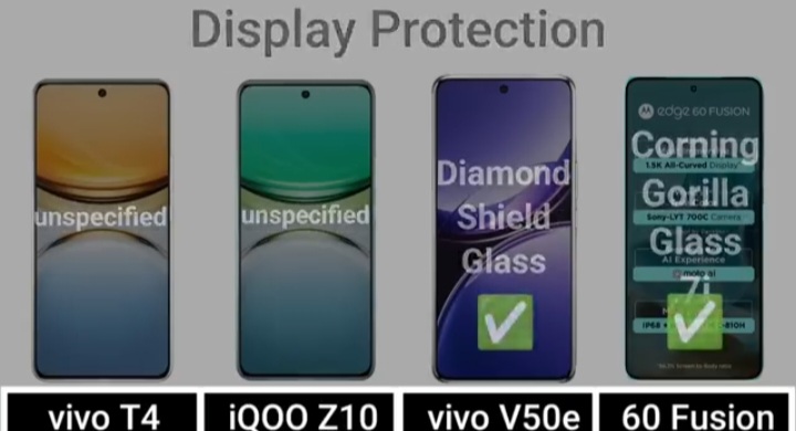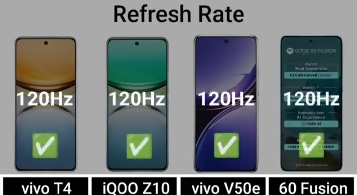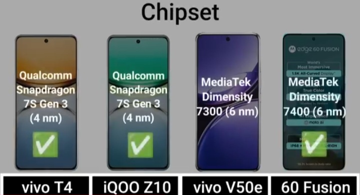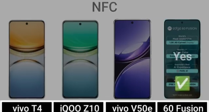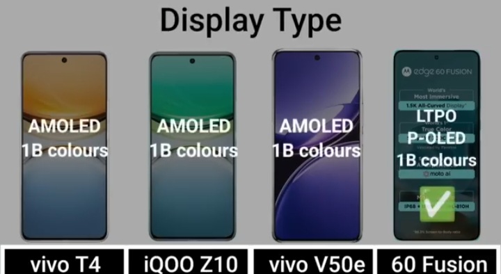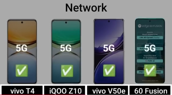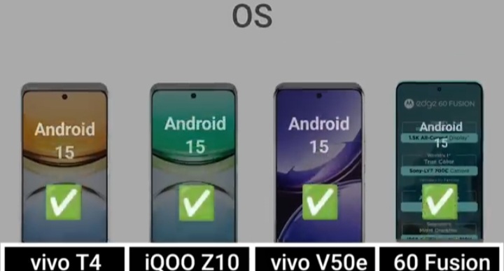 Detail Comparision Of Vivo T4 VS IQ00 Z10 VS Vivo V50E VS Motorola Edge 60 Fusion :-