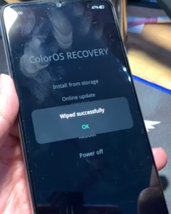 - Wiped Successfully – Click on Ok – ColorOS Recovery – Oppo Logo is Displayed.