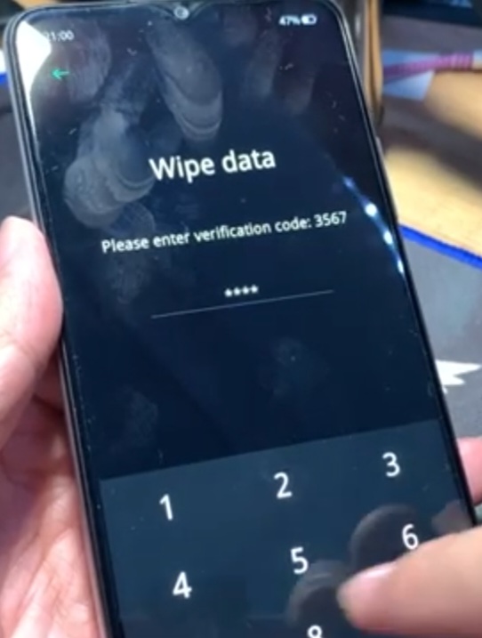 - Wiping,Please Wait (Enter Verification Code : 3567) – Wipe Data.