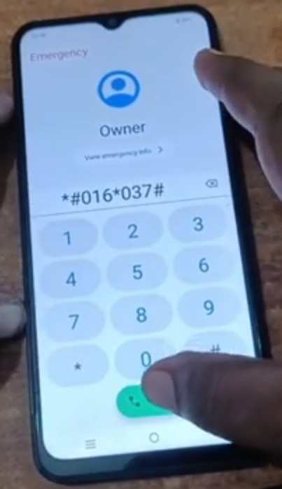 - Click on Emergency Call – Dial #016*037#.